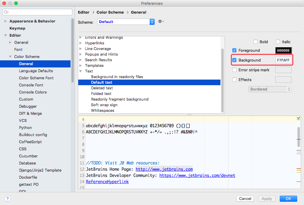 PyCharm 开发工具设置护眼色 python pycharm 2019-03-12 14:49 阅读 893 Mac系统版本点击:PyCharm->Preferences...,打开设置窗口Windows系统版本点击:File->Settings,打开设置窗口 收藏 | 0 2019-03-12 14:49 发布 0 评论 智慧编程 0 名望 发表评论 取消回复 请登录后评论... 登录后才能评论 评论列表(0条)