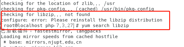 使用configure时出现Please reinstall the libzip distribution的错误