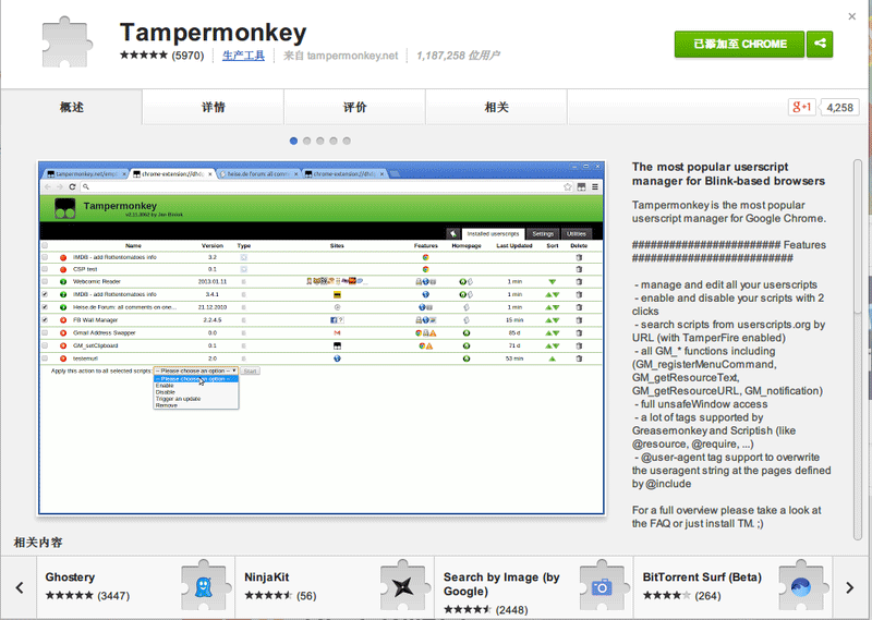一些第三方修改版,通常可以直接点击上面的下载,会自动安装,原版Chrome,打开扩展页,将上面下载的JS脚本拖动到浏览器中进行安装,如下: