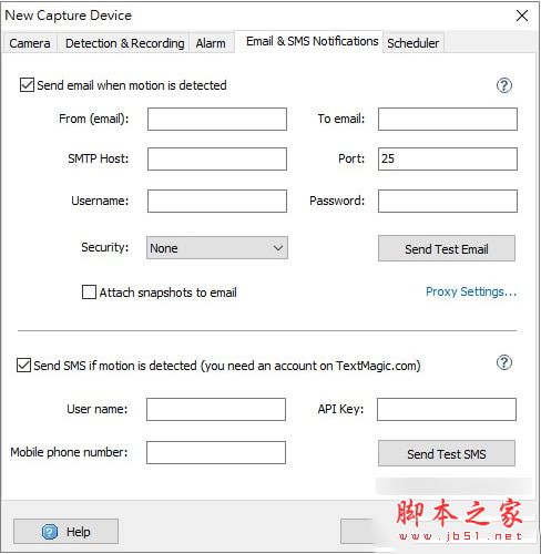 当触发移动侦测之后,除了电脑本身发出警报音效之外,也可以设定发出电子邮件,或是立即的简讯通知