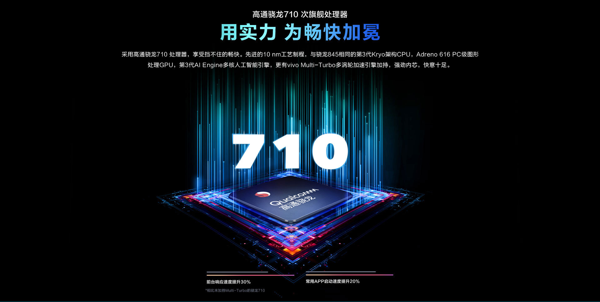 功能特色极点屏|骁龙710处理器|5000mAh大电池|后置三摄|9V/2A双引擎闪充