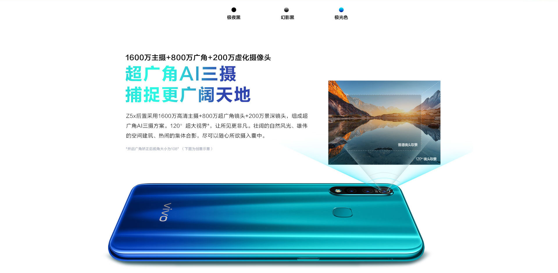 后置摄像头像素后置AI三摄:1600万像素(主摄)+800万像素(广角)+200万像素(虚化)