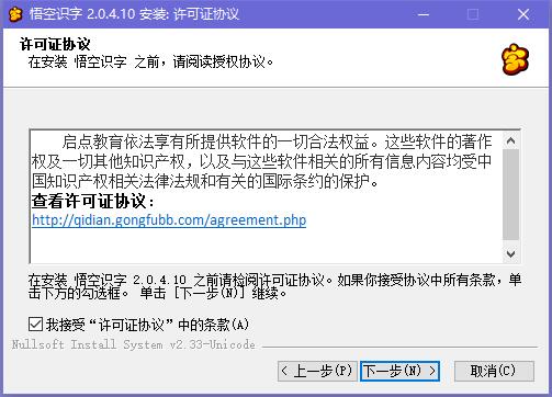 2、阅读悟空识字许可证协议,点击“下一步”继续