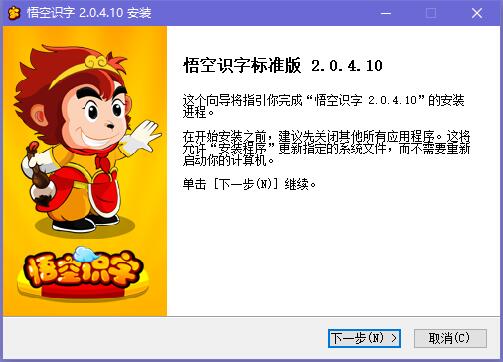 1、在本站下载悟空识字,解压之后双击.exe,出现一个安装界面,点击“下一步”继续