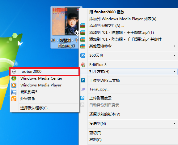 1、首先我们在电脑上安装好Foobar2000中文版软件,接下来我们找到需要转换的音频文件,然后我们鼠标右键点击该文件在弹出的菜单栏中我们点击“打开方式”选项,然后再选中Foobar2000,如下图所示。